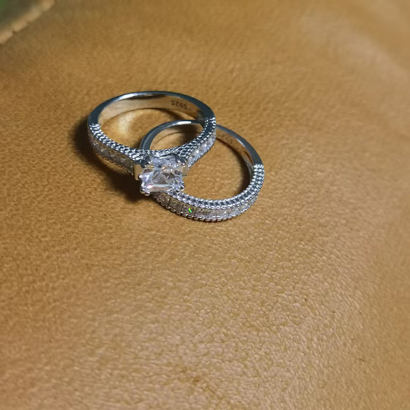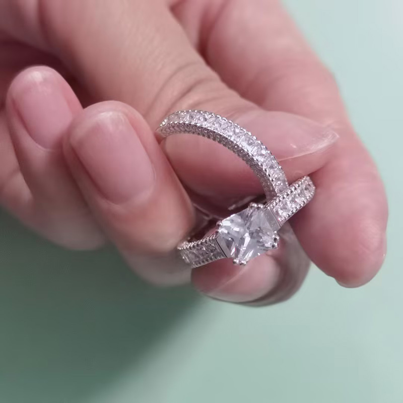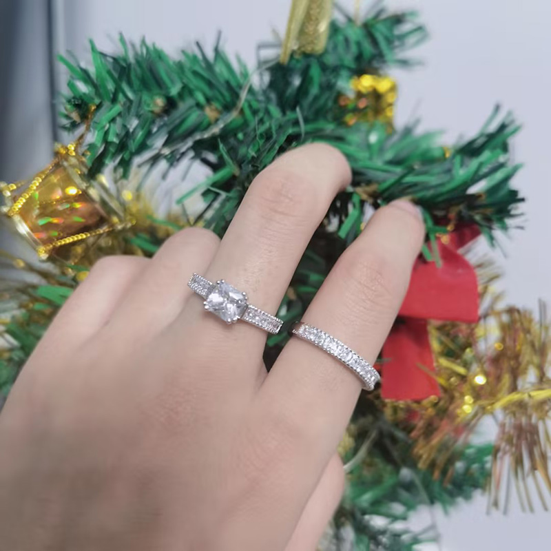 Jeulia Classico Set di Anelli in Argento Sterling con Taglio Radiante