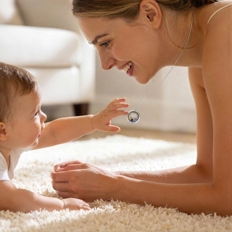 Jeulia Incisione Natante Medaglione Collana Con Charm e Pietra Della Nascita In Argento Sterling