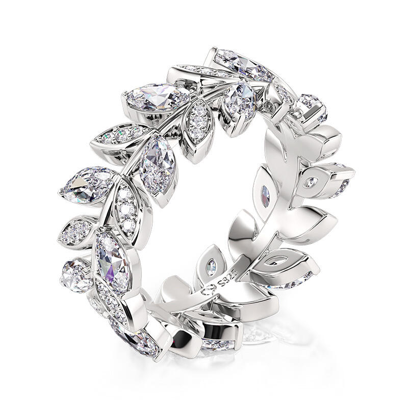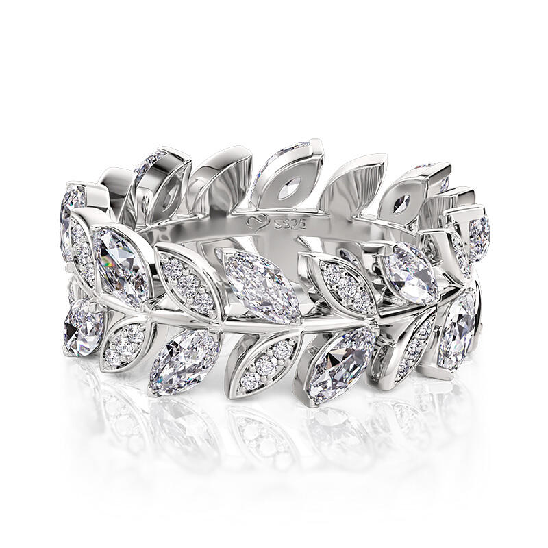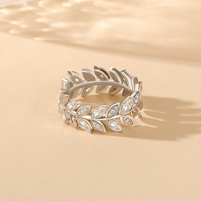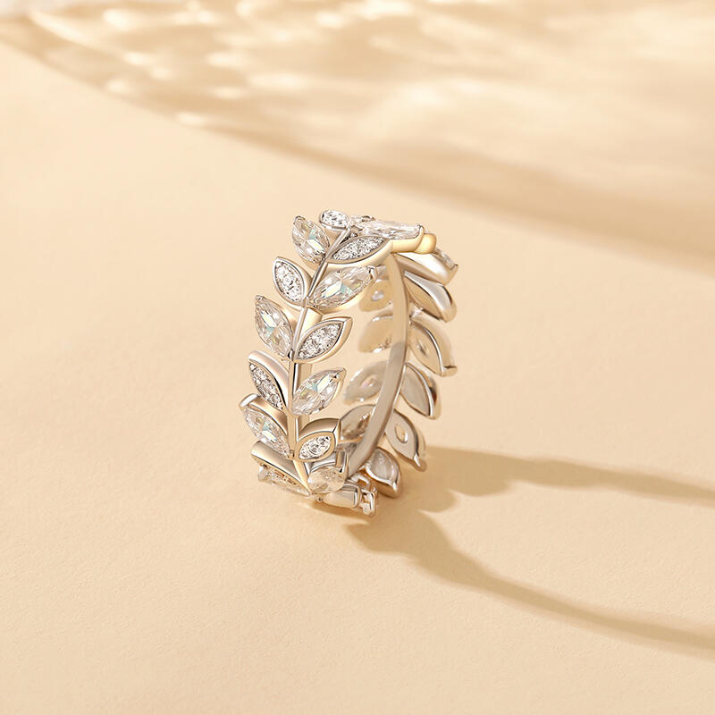 Jeulia Anello di Eternità Unico da Donna con Foglia dUlivo Intagliata in Argento Sterling
