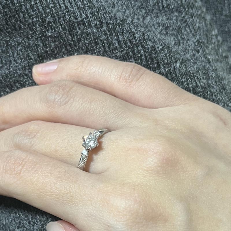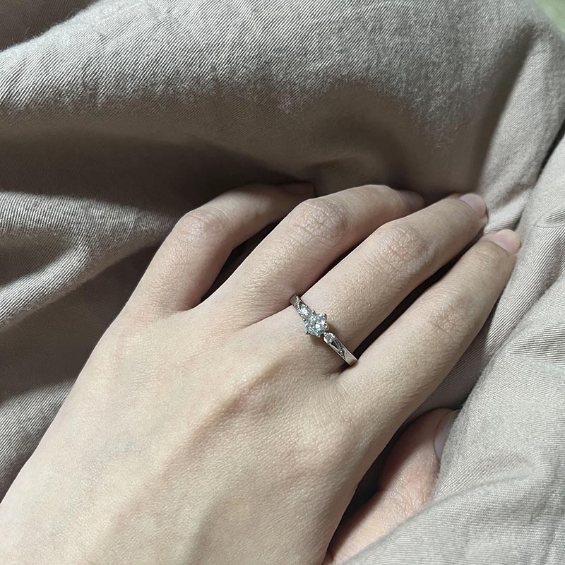 Jeulia Semplice Anello della Promessa con Tre Pietre e Bordo Milgrain Taglio Rotondo in Argento Sterling