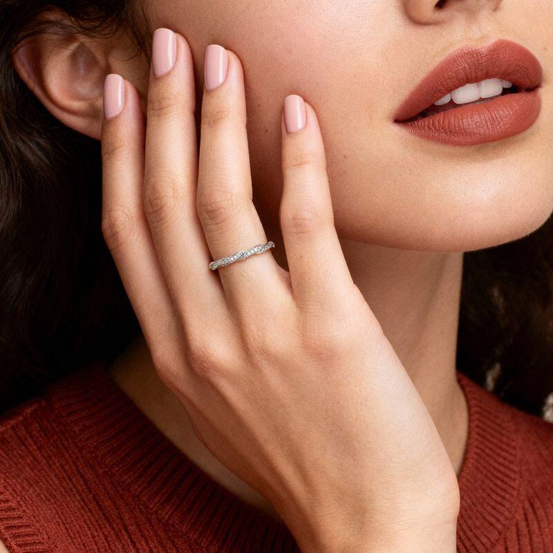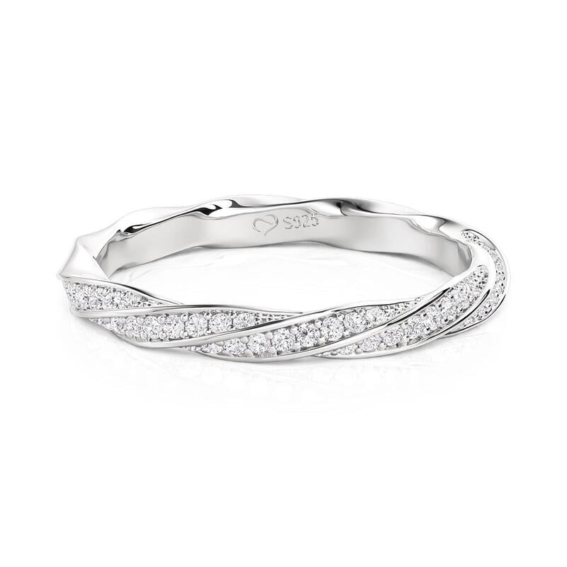 Argento morbidamente attorcigliato forma un anello ondulato, completamente impreziosito da pietre che increspano la luce. Questo Anello Eternità Wave Jeulia si muove con te, catturando sia la calma che la corrente di un amore che sembra in perpetuo movimento.